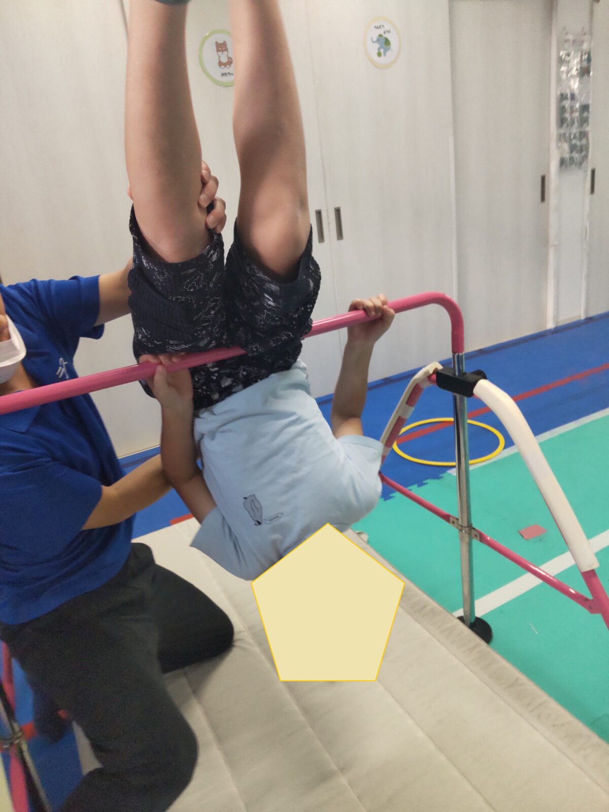 ポイントは①お腹を鉄棒にくっつける②足を高く蹴り上げる を意識してもらってがんばってくれました!出来ると自分の自信にも繋がる種目でした😊
