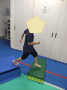 この種目では、バランス力や次の跳び箱のまでの距離間隔や空間認知力が養われます。