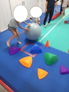 お友達と転がす速さを調整し合って、途中の障害物も乗り越えて、協力し合って出来ていてとてもよかったです!!
