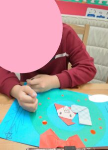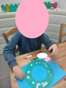 今月の制作は、『ぺたっとクリスマスリース』です🎄