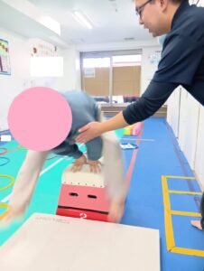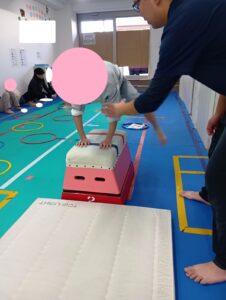 跳ぶのが難しい子は登ってジャンプや、パージャンプで跳んで跳び箱に座るだけでも◎