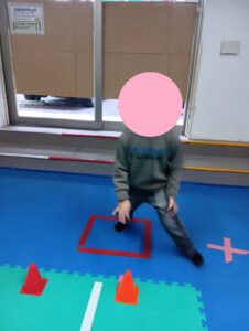 ③の反復横跳び移動では反復横跳びでコーナーがあるコーン等の周りを移動する種目となります。